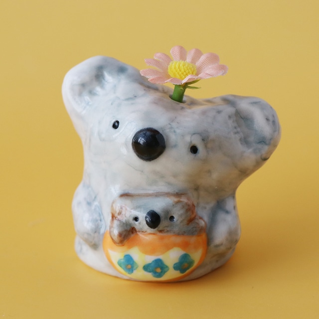 コアラ親子の小さな花さし(昭和レトロ風の花柄ポケットver.)