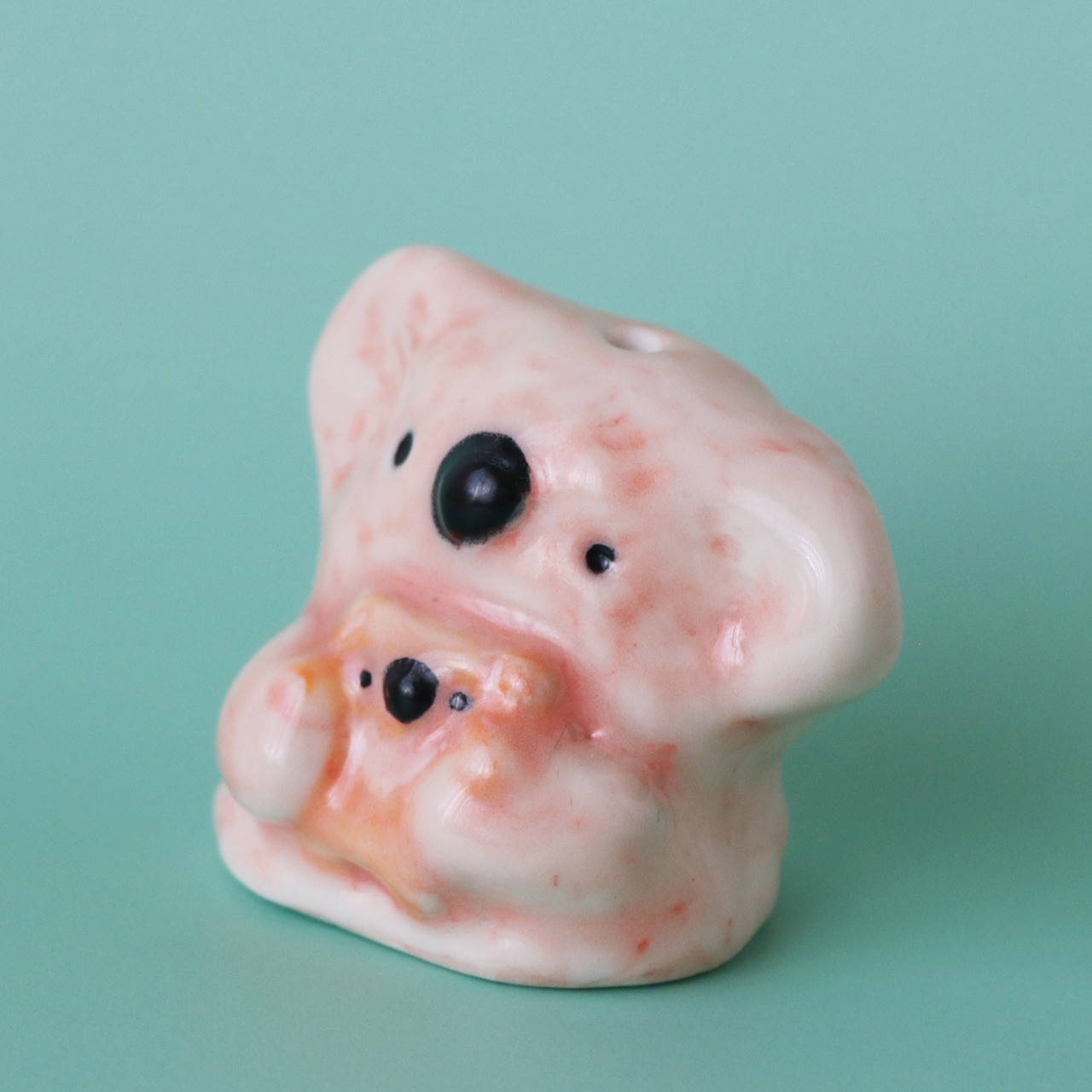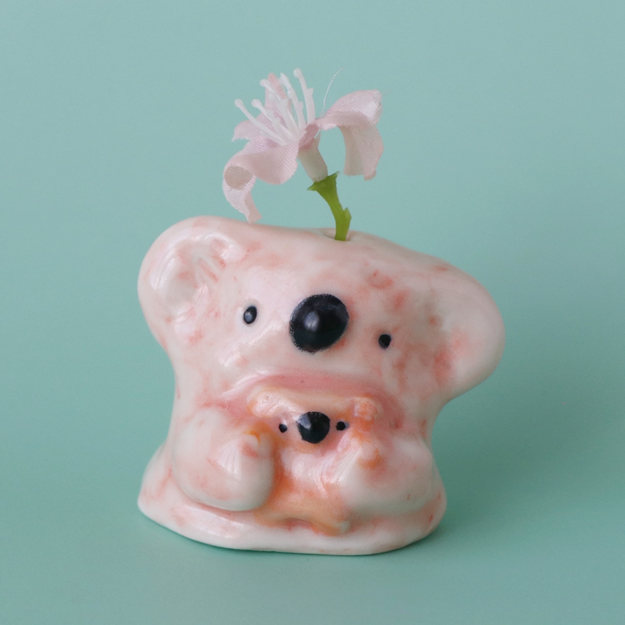 コアラ オブジェ 白 磁土 陶芸 粘土フラワーベース 絵本 童話 手のり ギフト 桜色 動物