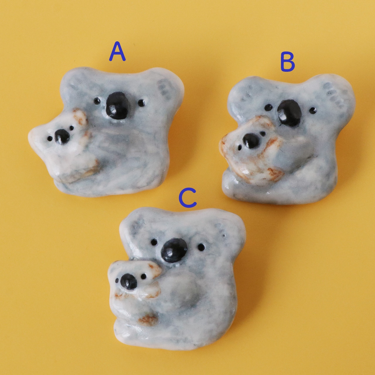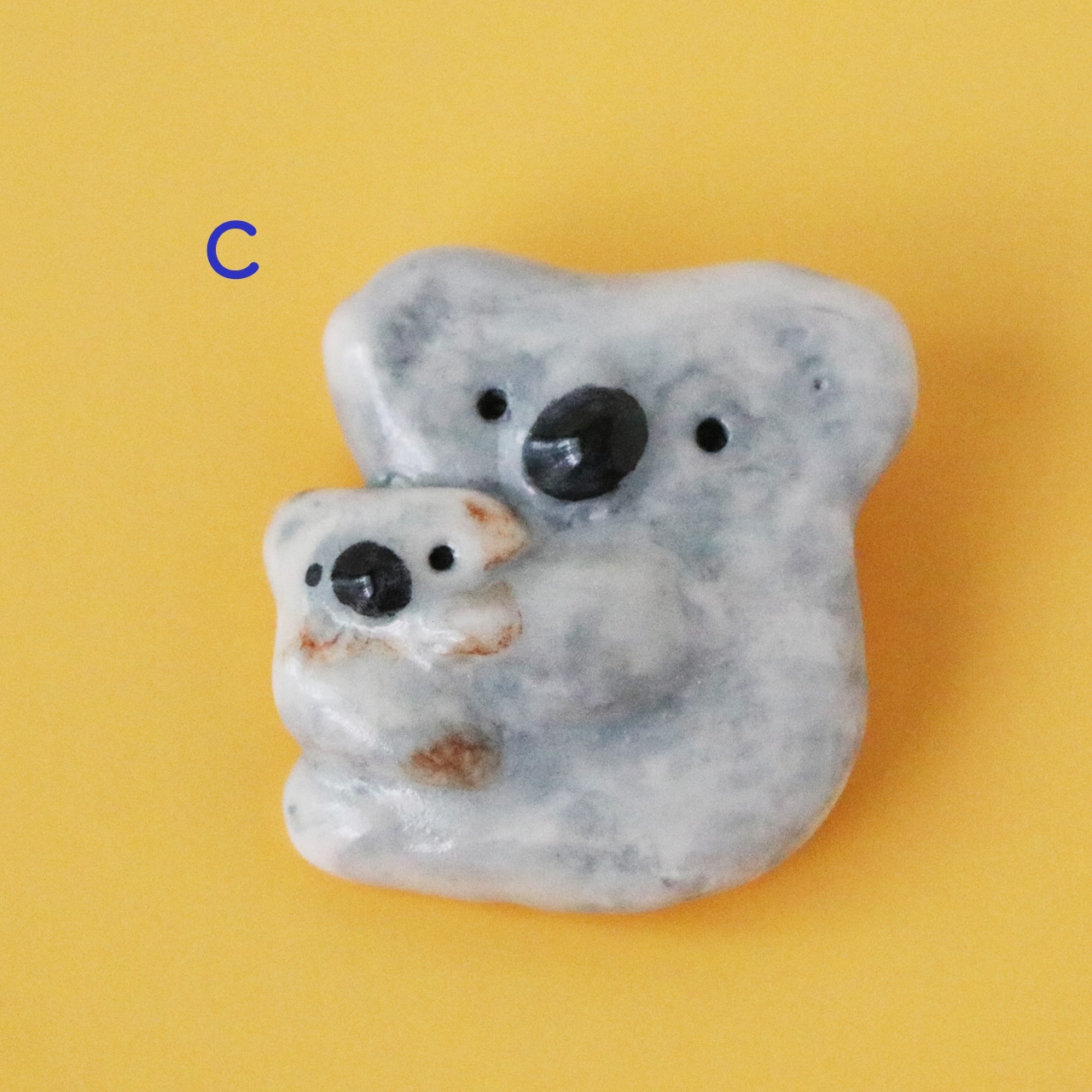コアラ親子の陶磁ブローチ (ハグコアラ)