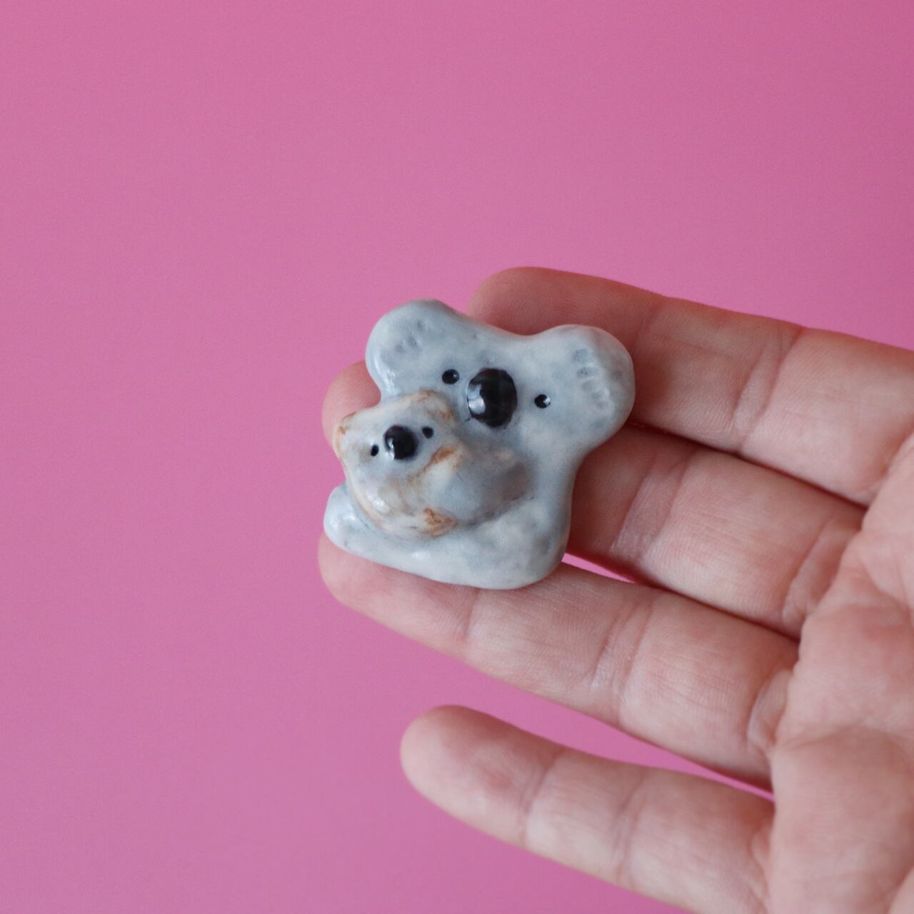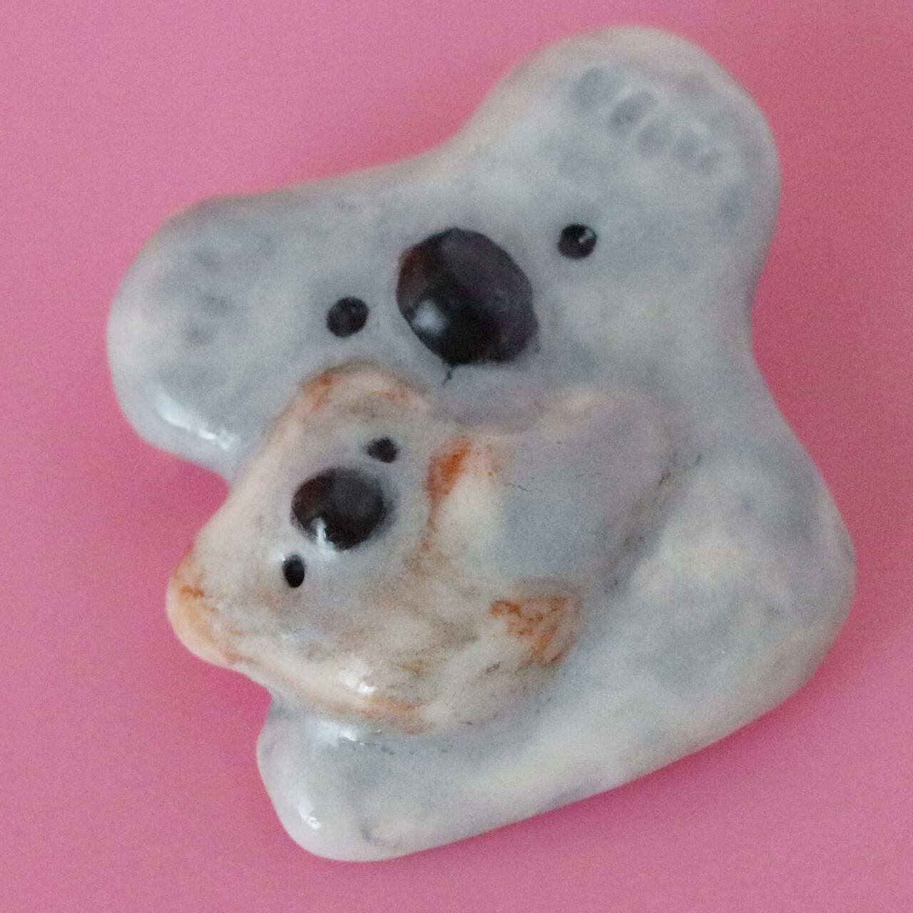 磁土(磁器)で制作したコアラ親子のブローチです。