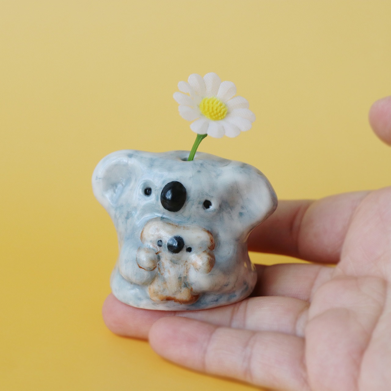 コアラ オブジェ 白 磁土 陶芸 粘土フラワーベース 絵本 童話 手のり ギフト 桜色 動物