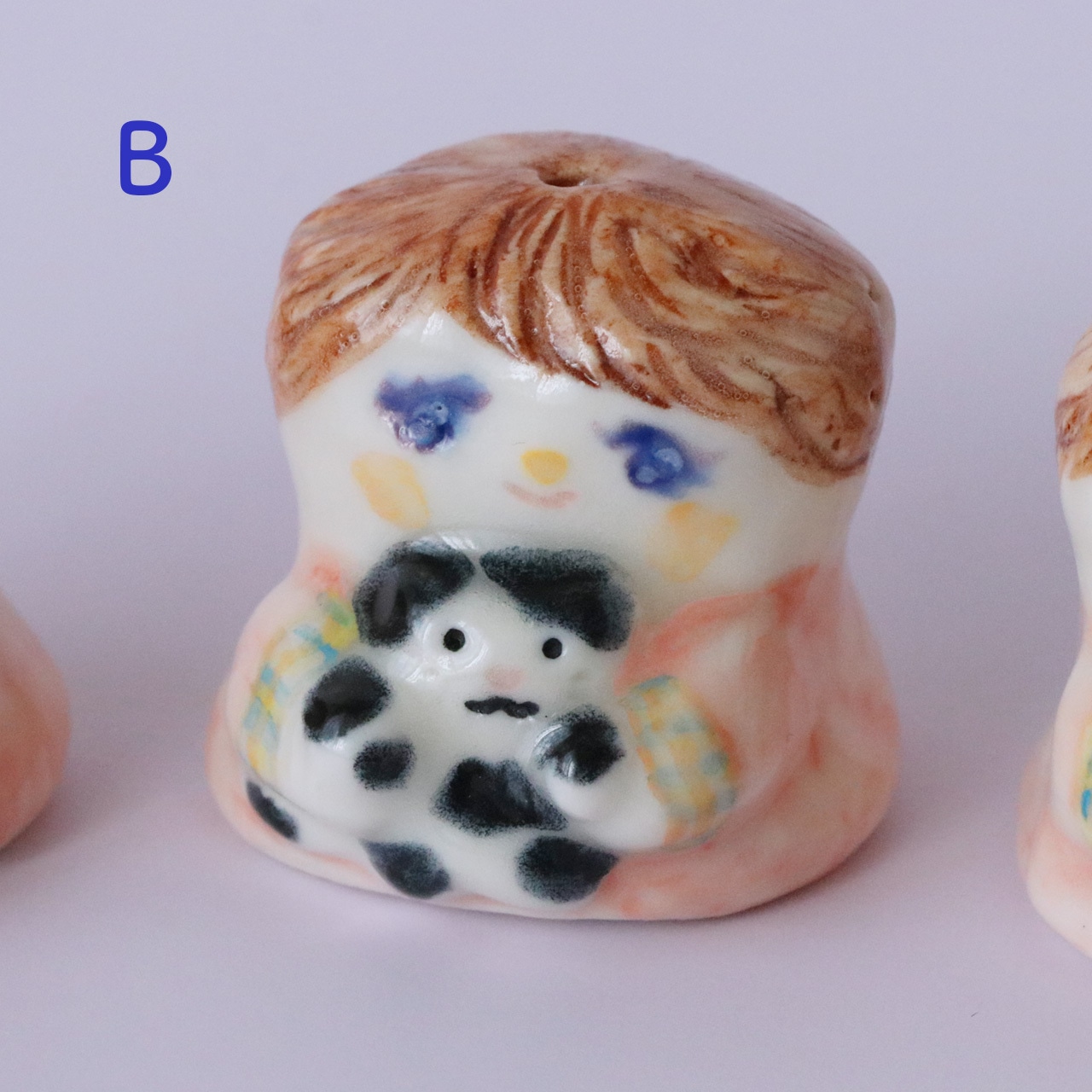 やさしい表情になるように、目や頬など色を何色も重ねて丁寧に絵付けをしています。