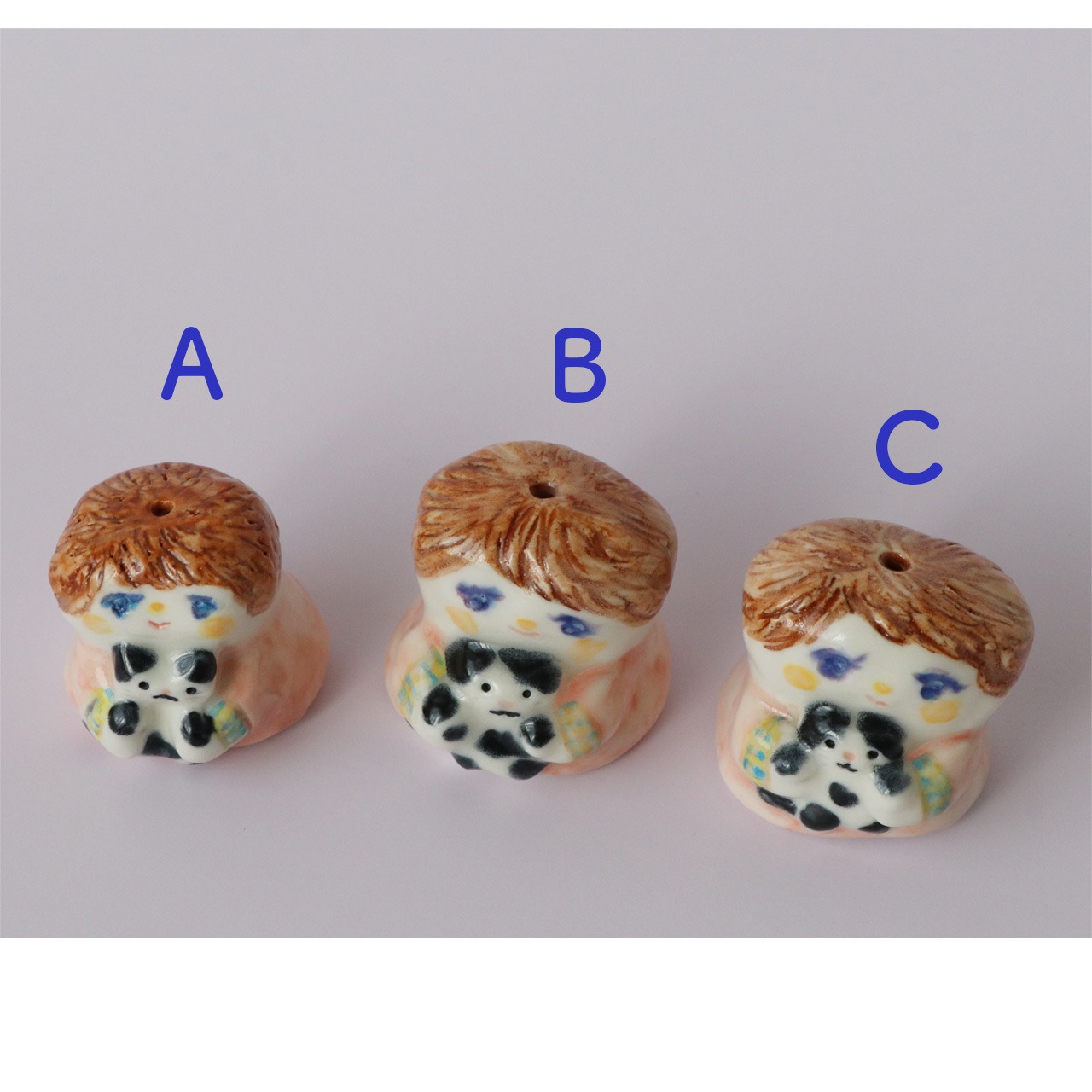 こちらの作品は、磁土(磁器)から形をつくり、陶芸用の絵の具で色付けをして、つやのある透明の釉薬をかけて焼成しました。