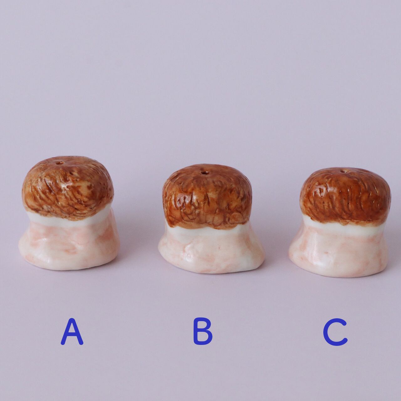 こちらの作品は、磁土(磁器)から形をつくり、陶芸用の絵の具で色付けをして、つやのある透明の釉薬をかけて焼成しました。