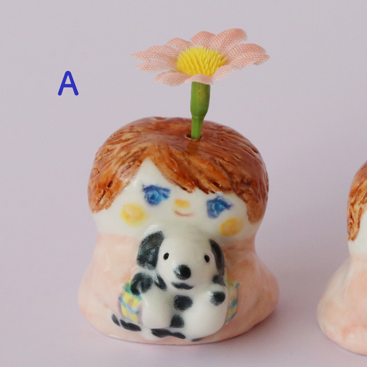 Dog 犬 オブジェ 白 磁土 陶芸 粘土フラワーベース 絵本 童話 手のり ギフト 動物 ファンタジー ペキニーズ ダルメシアン シーズー