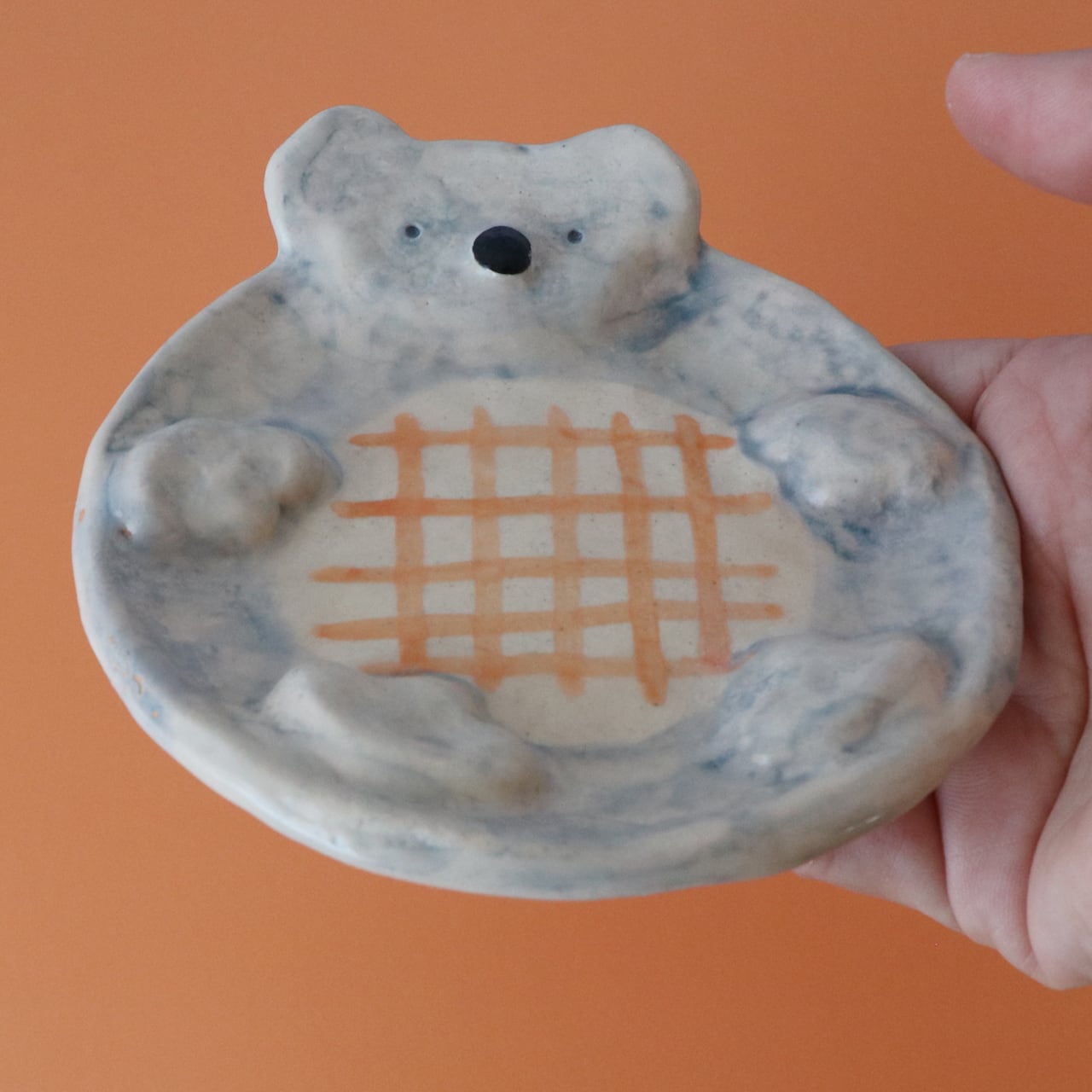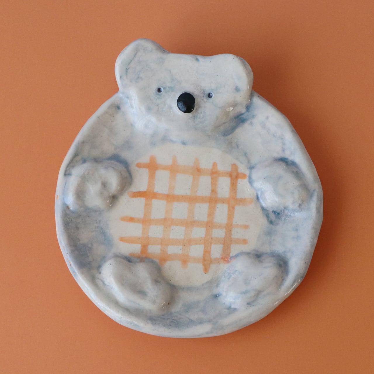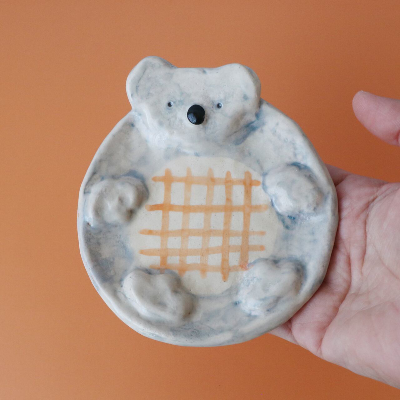 陶土(陶器)で制作したコアラの小皿(小)です。