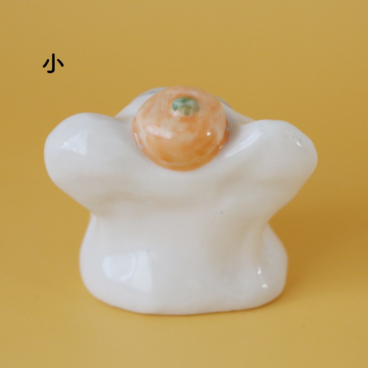 こちらの作品は、磁土(磁器)から形をつくり、陶芸用の絵の具で色付けをして、つやのある透明の釉薬をかけて焼成しました。