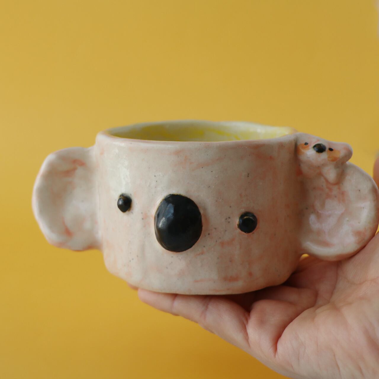 耳に小さなベイビーコアラがのっている愛らしいカップとなります。
