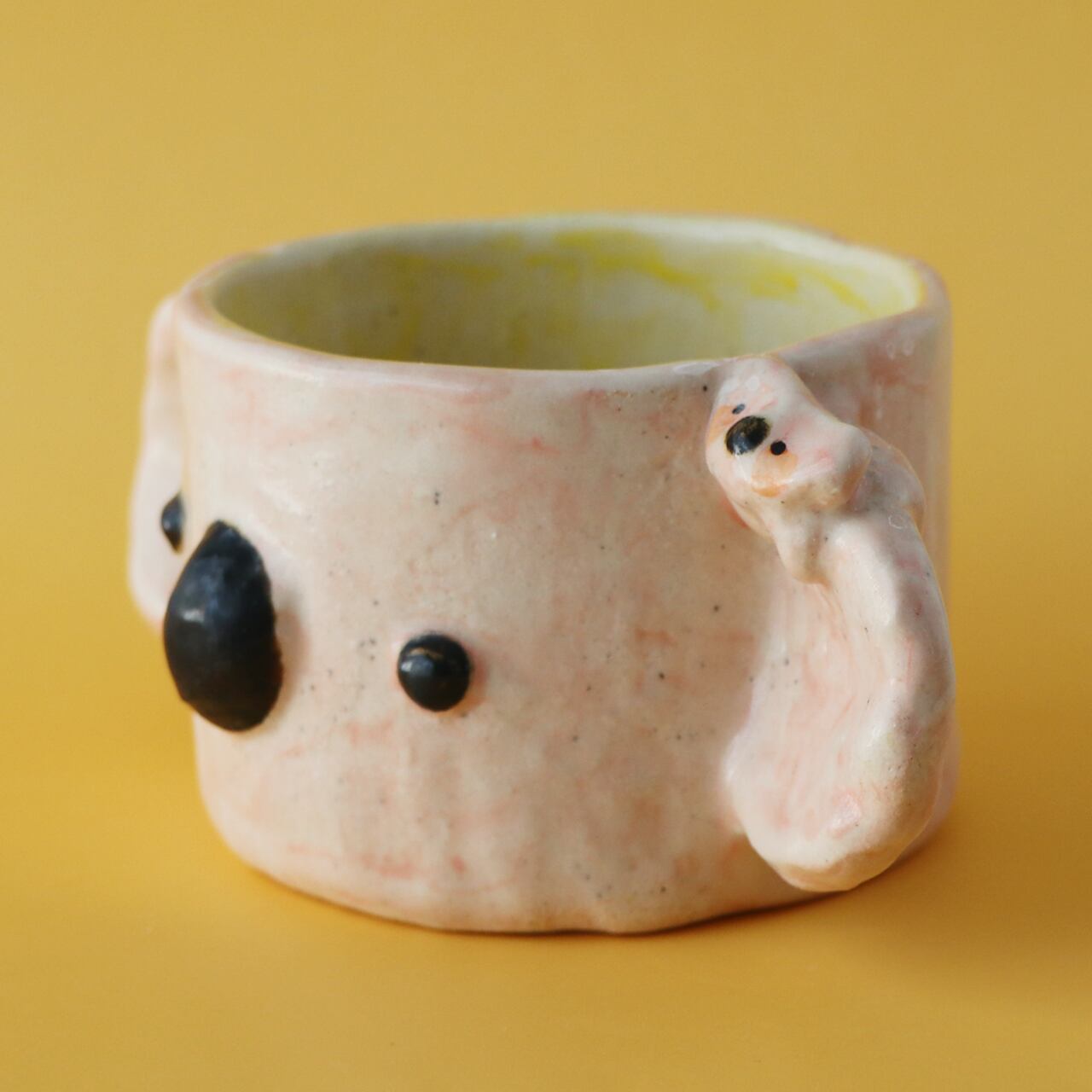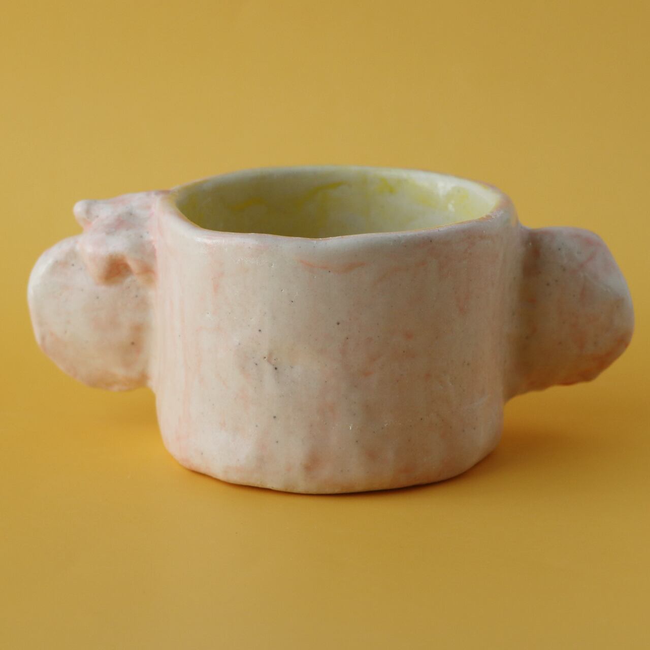 フリーカップとしてつくりましたが、両耳を手に持つとマグカップとしても使えます。