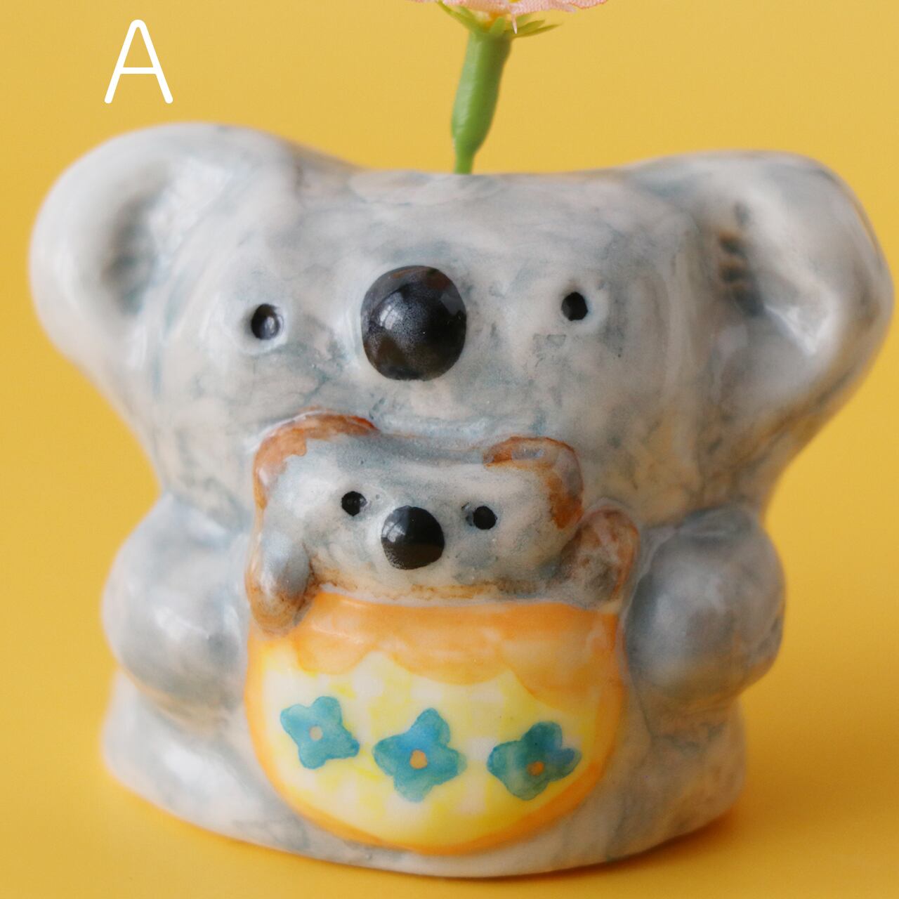 コアラ親子の小さな花さし(昭和レトロ風の花柄ポケットver.)