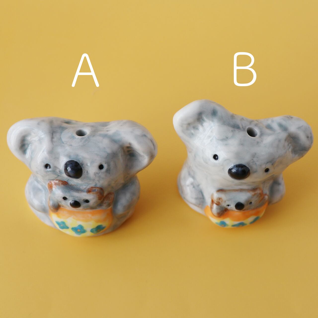 新作のコアラ親子の小さな花さしです。