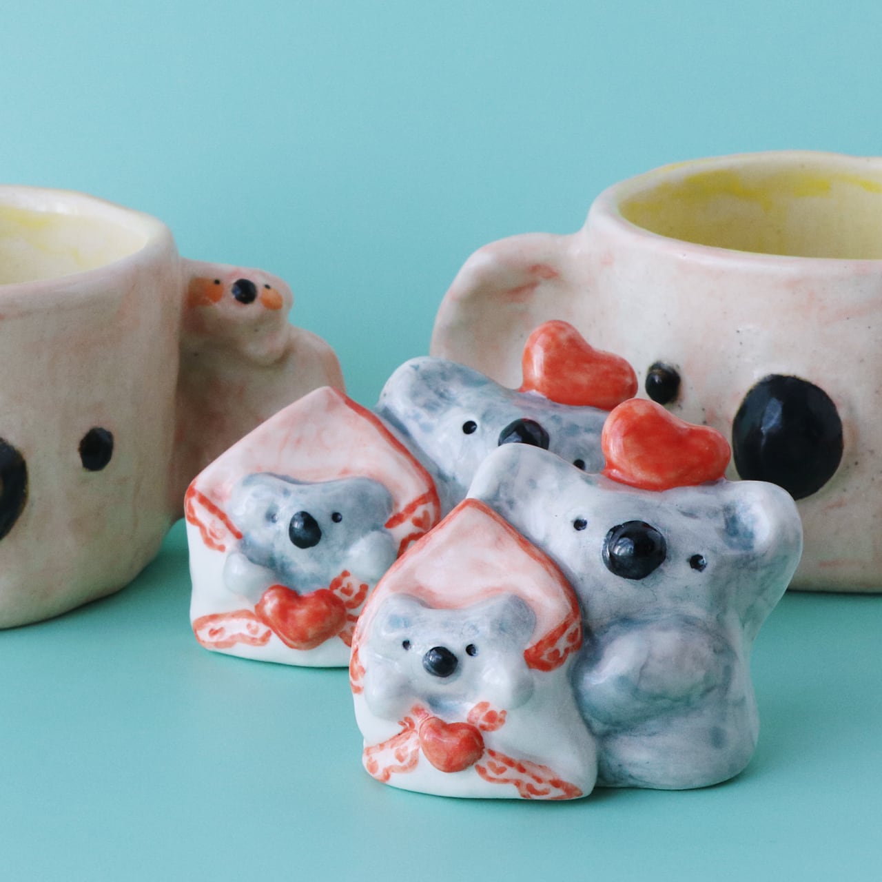 コアラ オブジェ 白 磁土 陶芸 粘土フラワーベース 絵本 童話 手のり ギフト ハート バレンタイン ラブリー